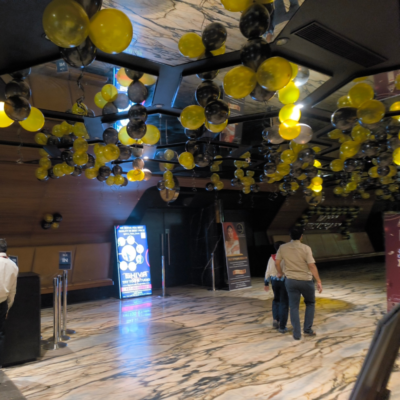 corporate event decoration, black and gold corporate decoration, premium corporate decor, luxury balloon decoration, corporate balloon arch, entrance balloon decoration, ceiling balloon decoration, corporate lobby decoration, cinema hall decoration, multiplex event decoration, brand launch decoration, corporate inauguration decoration, business event decor, professional event styling, modern corporate decoration, elegant event decor, commercial event decoration, promotional event decor, corporate party decoration, balloon decoration for corporate events, premium black gold theme decor, JMD Events corporate decoration, JMD Events balloon decoration, JMD Events premium decor, JMD Events corporate events, JMD Events brand launch decor, JMD Events inauguration decoration, JMD Events cinema decoration, JMD Events mall event decor, JMD Events business event decoration, JMD Events luxury event styling, JMD Events professional decoration services